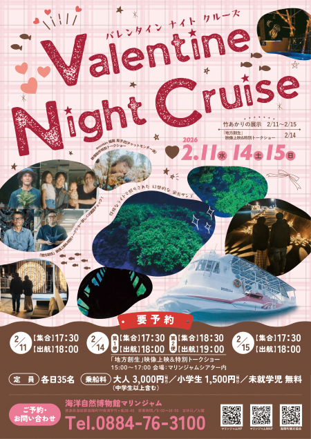 海陽町沿岸のサンゴの大群落を観察できる海中観光船「ブルーマリン号」で、期間限定ナイトクルーズが運航されます。船底の展望室から、ライトアップされたサンゴが夜の海に広がる幻想的な光景を楽しむことができるコース。